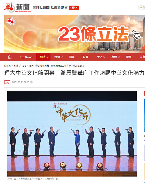 【點新聞報道】香港理工大學(理大)積極傳承及弘揚優秀中華文化,繼去年成立了「中國歷史與文化研究中心」,致力推廣中國歷史文化教育和研究,今年更進一步舉辦「理大中華文化節」,一連串活動由即日(3月14日)起展開,圍繞不同藝術形式和主題,包括陶胎漆器技藝、刺繡、中樂、中華經典誦讀等,邀請不同學者、專家和藝術家,通過展覽、講座、工作坊及音樂表演,充分彰顯中華文化的價值和魅力。