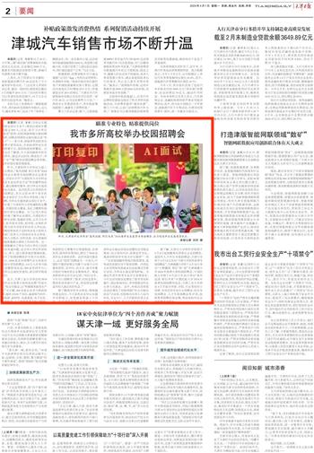 本报讯(记者 姜凝)为毕业生提供就业岗位万余个,现场达成初步意向超过500人;企业、医疗卫生单位“组团”招贤;校院两级积极对接招聘资源,招聘会现场校企面对面洽谈“养人才”……连日来,津城多所高校举办春季大型双选会,为2024届毕业生求职搭建平台,春招热度持续攀高。记者走访了解到,不少高校瞄准本校专业特色,通过访企拓岗、现场宣介、举办“专”“精”特色校园招聘会等举措,提升供需对接的精准度。