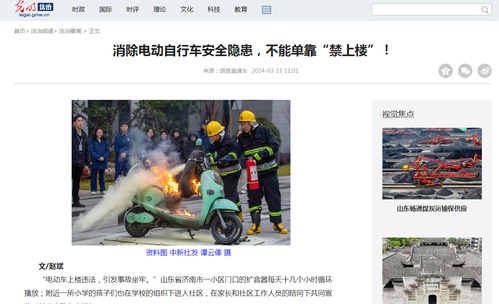 另外,公安部等国家多个部门就消除电动自行车隐患问题作出规定,山东省济南市等多地也因地制宜,出台关于禁止电动自行车上楼等相关文件。