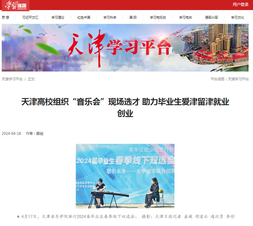 4月17日上午,记者走进天津音乐学院南校区,便听到阵阵悠扬的琴声传来,该校2024届毕业生春季线下双选会在这里举办。别具一格的是,本次双选会将音乐会“搬”至求职现场,多个专业的学生纷纷登台一展所长,有的轻抚琴弦,有的引吭高歌,还有学生组成乐团进行器乐合奏。台下驻足观看的,除了学校师生,还有包括天津歌舞剧院、天津交响乐团等许多用人单位的招聘人员。学生们通过精彩的音乐表演,向用人单位展示自己的专业技能水平。“这种方式很新颖,让人眼前一亮。”天津交响乐团招聘负责人表示,天津音乐学院通过“音乐会”现场视奏向用人单位展现和推荐毕业生,使用人单位不仅能对学生的专业素养有更直观的了解,这种“先观展选才、再招人用人”的方式也大大提高了招聘效率。“此次双选会,我们除了为学生和企业搭建交流平台,让学生能将音乐才能与职业发展有机结合,还提供了务实的就业服务,提前一个多月就向企业发布我校毕业生专业分布,以精准实现毕业生就业与用人单位纳才供需匹配。”天津音乐学院党委学工部部长朱诚介绍,该校全力为毕业生搭建高质量的留津就业创业服务平台,参加本次双选会的企事业单位108家,其中约70%为天津用人单位。据统计,当天双选会吸引了2000多名学子参与,用人单位现场收取简历超1100份,初步达成就业意向136人。