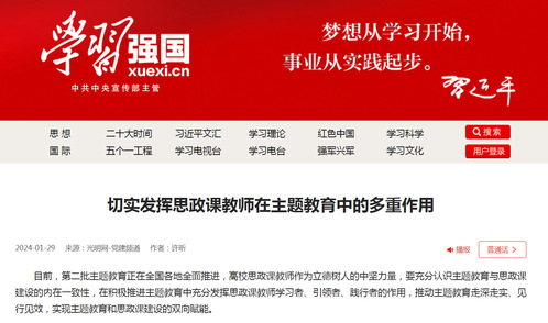 目前,第二批主题教育正在全国各地全面推进,高校思政课教师作为立德树人的中坚力量,要充分认识主题教育与思政课建设的内在一致性,在积极推进主题教育中充分发挥思政课教师学习者、引领者、践行者的作用,推动主题教育走深走实、见行见效,实现主题教育和思政课建设的双向赋能。