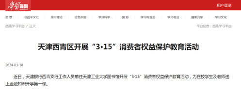 近日,天津银行西青支行工作人员前往天津工业大学图书馆开展“3·15”消费者权益保护教育活动,为在校学生及老师送上金融知识开学第一课。
