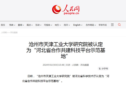 日前,“沧州市天津工业大学研究院”被河北省科学技术厅认定为“河北省合作共建科技平台示范基地”。