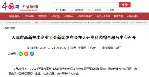 天津市高新技术企业大会新闻发布会在天开高科园综合服务中心召开