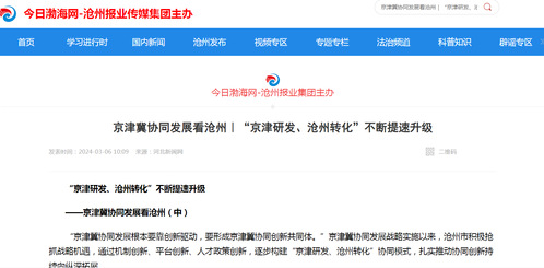 京津冀协同发展看沧州|“京津研发、沧州转化”不断提速升级
