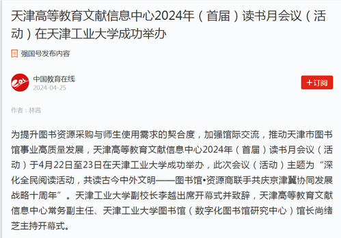 天津高等教育文献信息中心2024年(首届)读书月会议(活动)在天津工业大学成功举办