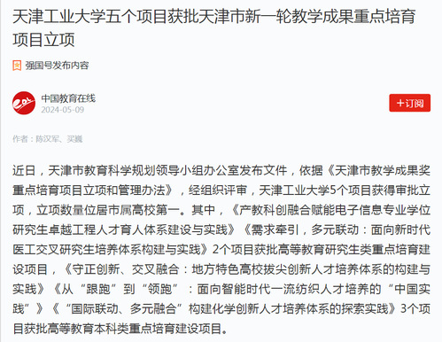 天津工业大学五个项目获批天津市新一轮教学成果重点培育项目立项