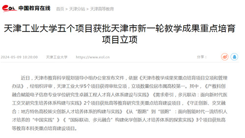 中国教育在线丨天津工业大学五个项目获批天津市新一轮教学成果重点培育项目立项