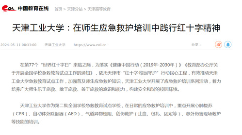 天津工业大学作为第二批全国学校急救教育试点学校,在日常的应急救护培训中,重点开展心肺复苏(CPR)、自动体外除颤器(AED)、气道异物梗阻、创伤救护(止血、包扎、固定等)、意外伤害现场救护等技能的培训。
