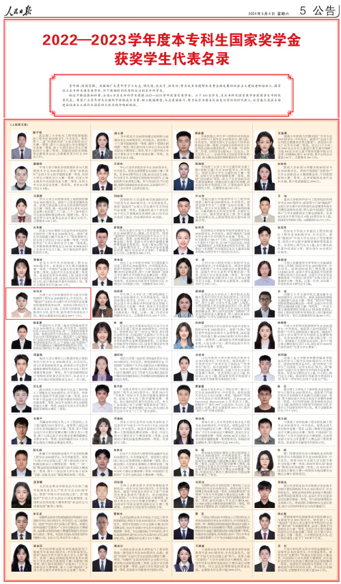 人民日报丨2022—2023学年度本专科生国家奖学金获奖学生代表名录
