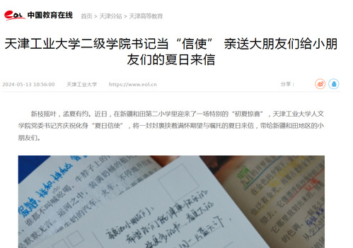 天津工业大学二级学院书记当“信使” 亲送大朋友们给小朋友们的夏日来信