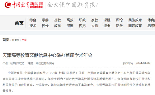 中国教育报-中国教育新闻网讯(记者 杜娟 陈欣然)日前,由天津高等教育文献信息中心主办的首届学术年会在天津工业大学博雅书院举办,年会主题为“新时代天津高校图书馆高质量发展”。来自天津市高校图书馆和相关行业的80余位嘉宾、专家学者、馆长与馆员代表参加了本次年会,共谋天津高校图书馆的现代化建设与高质量发展。