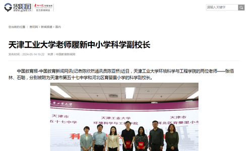 中国教育报-中国教育新闻网讯(记者陈欣然通讯员陈亚桥)近日,天津工业大学环境科学与工程学院的两位老师——张佰林、石聪,分别被聘为天津市第五十七中学和河北区育婴里小学的科学副校长。