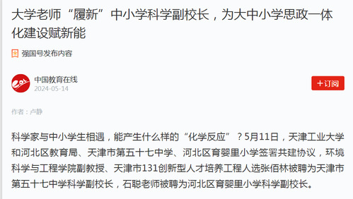 学习强国丨大学老师“履新”中小学科学副校长,为大中小学思政一体化建设赋新能