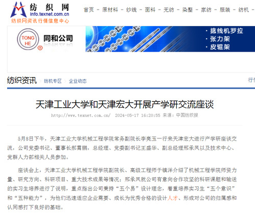 纺织网丨天津工业大学和天津宏大开展产学研交流座谈