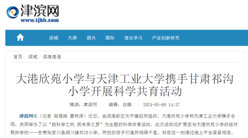 津滨网讯(记者 栾琨皓 窦树泽)近日,由滨海新区太平镇政府组织,大港欣苑小学和天津工业大学携手合同,共同举办了以“扬科学之帆 筑未来之梦”为主题的科学共育活动。此次活动还扩展至与大港欣苑小学的结对帮扶学校——甘肃张家川县胡川镇祁沟小学。两校的孩子们虽然相隔千里,却在这一刻通过线上平台紧紧相连。