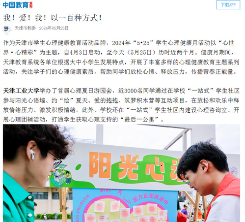作为天津市学生心理健康教育活动品牌,2024年“5•25”学生心理健康月活动以“心世界·心精彩”为主题,自4月3日启动,至今天(5月25日)历时近两个月。健康月期间,天津教育系统各单位根据大中小学生发展特点,开展了丰富多样的心理健康教育主题系列活动,关注学子们的心理健康素质,帮助同学们放松心情、释放压力,传播青春正能量。