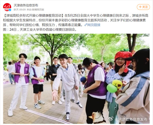 【津城高校多形式开展心理健康教育活动】在5月25日全国大中学生心理健康日到来之际,津城多所高校根据大学生发展特点,纷纷开展丰富多彩的心理健康教育主题系列活动,关注学子们的心理健康素质,帮助同学们放松心情、释放压力,传播青春正能量。图:24日,天津工业大学举办首届心理夏日游园会。