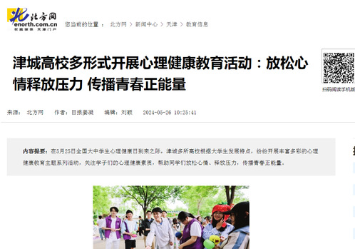 天津北方网讯:在5月25日全国大中学生心理健康日到来之际,津城多所高校根据大学生发展特点,纷纷开展丰富多彩的心理健康教育主题系列活动,关注学子们的心理健康素质,帮助同学们放松心情、释放压力,传播青春正能量。