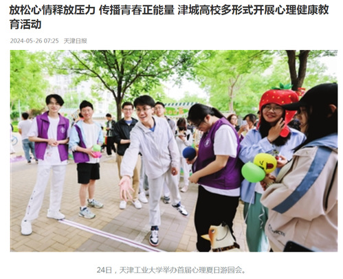 在5月25日全国大中学生心理健康日到来之际,津城多所高校根据大学生发展特点,纷纷开展丰富多彩的心理健康教育主题系列活动,关注学子们的心理健康素质,帮助同学们放松心情、释放压力,传播青春正能量。