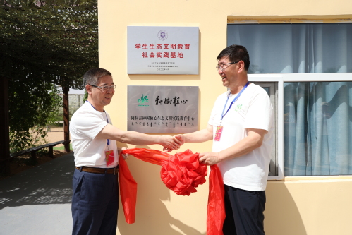 在活动现场,刘义副校长与吴向伟校友共同为“天津工业大学学生生态文明教育社会实践基地”揭牌,刘义副校长为吴向伟校友颁发了“天津工业大学学生社会实践导师”聘书。刘义副校长表示,学校将认真贯彻落实习近平生态文明思想,组织广大学生到实践基地开展社会实践活动,让广大学生实地体验、亲手参与,为建设美丽中国增绿添彩。刘义副校长还对积极投入沙漠锁边生态公益行动和校友生态家园建设的校友们表达了感谢。