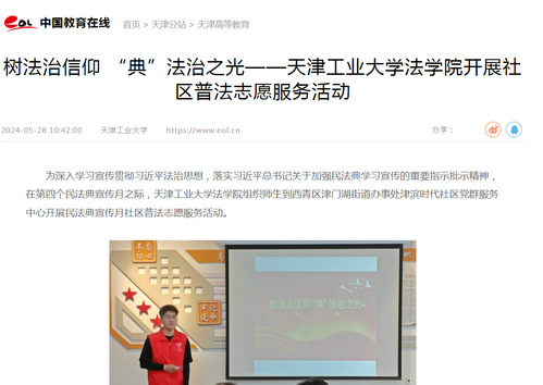 中国教育在线丨树法治信仰 “典”法治之光——天津工业大学法学院开展社区普法志愿服务活动