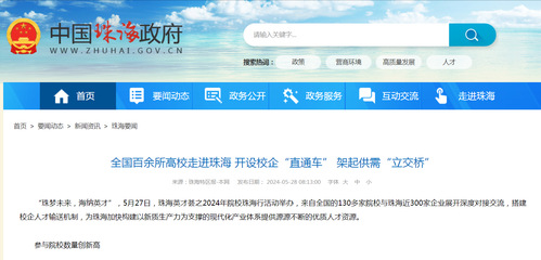 “珠梦未来,海纳英才”,5月27日,珠海英才荟之2024年院校珠海行活动举办,来自全国的130多家院校与珠海近300家企业展开深度对接交流,搭建校企人才输送机制,为珠海加快构建以新质生产力为支撑的现代化产业体系提供源源不断的优质人才资源。