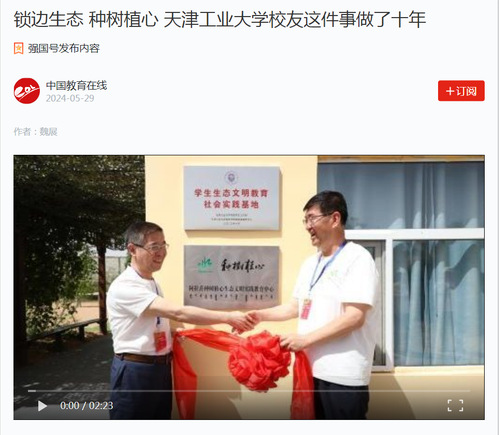 据悉,2014年5月,来自广东、上海、浙江、北京、天津、陕西、宁夏等地的近30名校友齐聚阿拉善腾格里沙漠锁边生态公益基地,开启了“天津工业大学校友生态家园”“天津工业大学校友林”的首创之举,他们大力践行绿色发展理念,为我国西部防沙治沙事业作出了天工人的积极贡献。