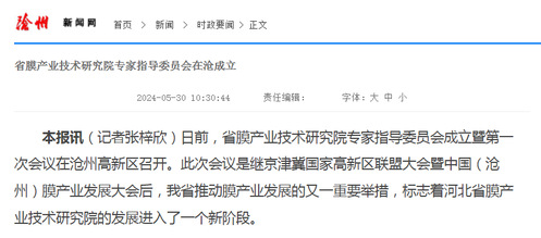 本报讯(记者张梓欣)日前,省膜产业技术研究院专家指导委员会成立暨第一次会议在沧州高新区召开。此次会议是继京津冀国家高新区联盟大会暨中国(沧州)膜产业发展大会后,我省推动膜产业发展的又一重要举措,标志着河北省膜产业技术研究院的发展进入了一个新阶段。