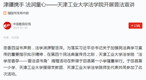 学习强国丨津疆携手 法润童心——天津工业大学法学院开展普法宣讲