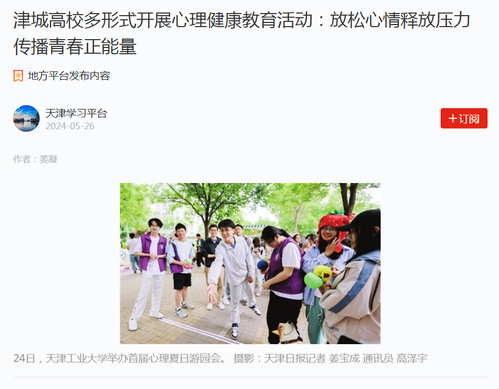 在5月25日全国大中学生心理健康日到来之际,津城多所高校根据大学生发展特点,纷纷开展丰富多彩的心理健康教育主题系列活动,关注学子们的心理健康素质,帮助同学们放松心情、释放压力,传播青春正能量。
