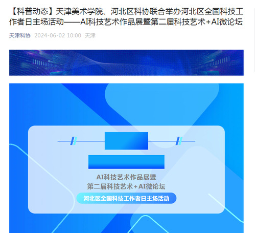 【科普动态】天津美术学院、河北区科协联合举办河北区全国科技工作者日主场活动——AI科技艺术作品展暨第二届科技艺术+AI微论坛