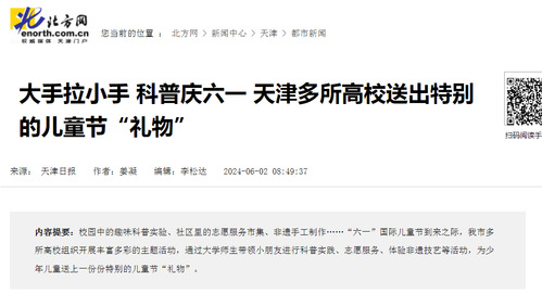 大手拉小手 科普庆六一 天津多所高校送出特别的儿童节“礼物”