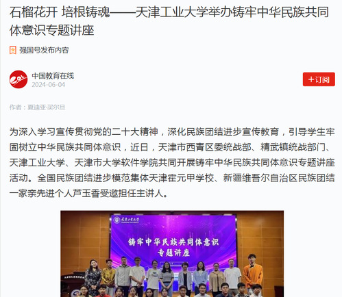 石榴花开 培根铸魂——天津工业大学举办铸牢中华民族共同体意识专题讲座