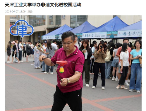 天津工业大学举办非遗文化进校园活动8日是文化和自然遗产日。7日,天津工业大学举办非遗文化进校园活动,邀请空竹、糖人、脸谱、“快板、风筝、熟梨糕等技艺的非遗代表性传承人到校,向师生展示非遗技艺、进行互动体验,提高师生非遗保护意识,传承弘扬中华优秀传统文化。(天津日报记者 姜宝成 摄)