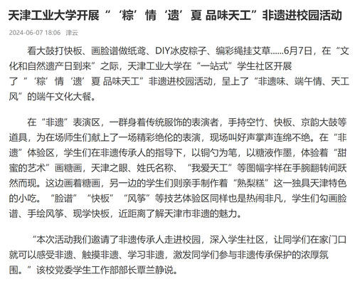 天津工业大学开展“‘粽’情‘遗’夏 品味天工”非遗进校园活动