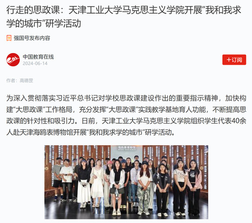 行走的思政课:天津工业大学马克思主义学院开展“我和我求学的城市”研学活动