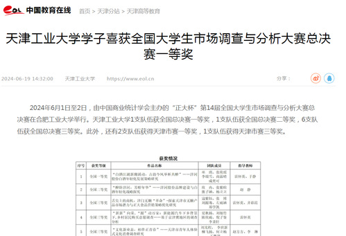 天津工业大学学子喜获全国大学生市场调查与分析大赛总决赛一等奖