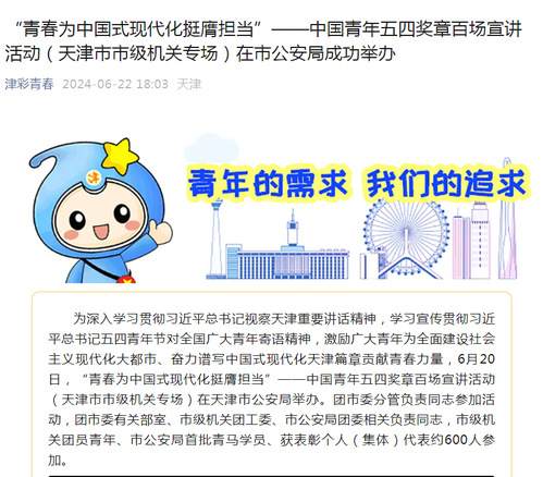 “青春为中国式现代化挺膺担当”——中国青年五四奖章百场宣讲活动(天津市市级机关专场)在市公安局成功举办