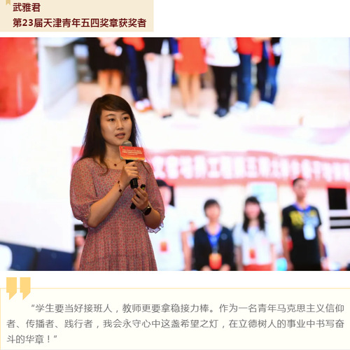 武雅君是天津工业大学马克思主义学院思政课教师,硕士生导师,中国社会科学院马克思主义研究院访问学者,荣获第23届天津青年五四奖章、第三届全国高校思想政治理论课教学展示活动一等奖、天津高校第十六届青年教师教学竞赛思政课组一等奖、天津市第二届基层理论宣讲员大赛教育系统分站赛第一名、天津市第三届研究生思想政治理论课教学比武一等奖、天津市第四届思想道德与法治课教学比武一等奖等多项荣誉。曾受邀参加录制津云《现在开讲》、人民网《初心映照新时代(第二季)》等大型思政节目,积极推动思政小课堂与社会大课堂紧密结合。