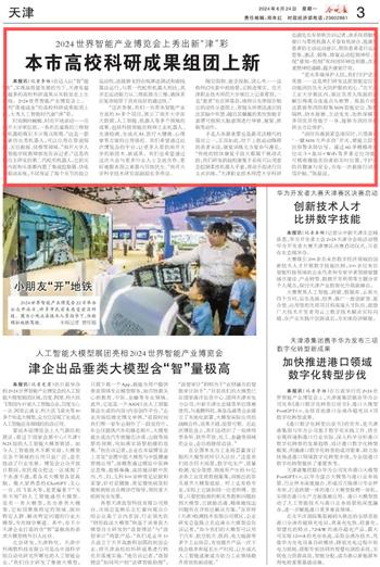 本报讯(记者李杨)在迈入以“智”提“质”、实现高质量发展的当下,天津有越来越多的高校科研成果从实验室走上生产线。2024世界智能产业博览会上,一系列“落地成金”的高校科研成果组团上新,大秀人工智能时代新“津”彩。