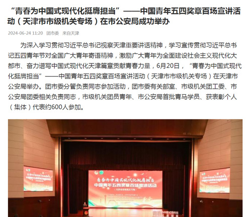 “青春为中国式现代化挺膺担当”——中国青年五四奖章百场宣讲活动(天津市市级机关专场)在市公安局成功举办