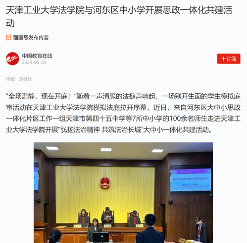 学习强国丨天津工业大学法学院与河东区中小学开展思政一体化共建活动