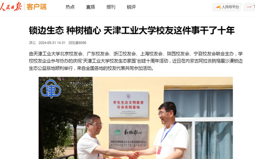 据悉,2014年5月,来自广东、上海、浙江、北京、天津、陕西、宁夏等地的近30名校友齐聚阿拉善腾格里沙漠锁边生态公益基地,开启了“天津工业大学校友生态家园”“天津工业大学校友林”的首创之举,各地校友认种丝棉木、香花槐、金叶榆乔木林1200棵,截至目前校友企业和个人累计认种锁边沙生灌本林近2000亩。广大校友大力践行绿色发展理念,为我国西部防沙治沙事业作出了天工人的积极贡献。(天津日报记者 姜凝)