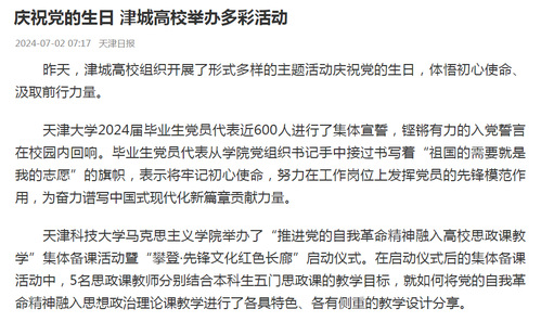 昨天,津城高校组织开展了形式多样的主题活动庆祝党的生日,体悟初心使命、汲取前行力量。