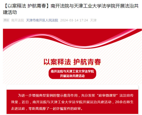 【以案释法 护航青春】南开法院与天津工业大学法学院开展法治共建活动