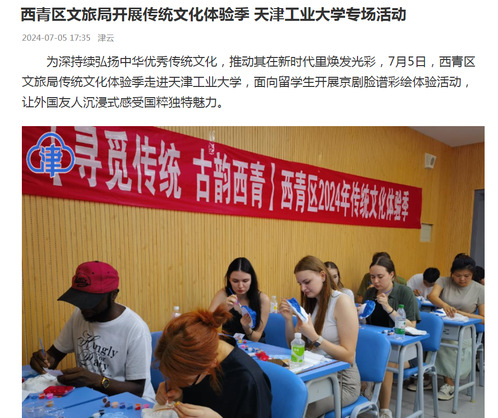 为深持续弘扬中华优秀传统文化,推动其在新时代里焕发光彩,7月5日,西青区文旅局传统文化体验季走进天津工业大学,面向留学生开展京剧脸谱彩绘体验活动,让外国友人沉浸式感受国粹独特魅力。