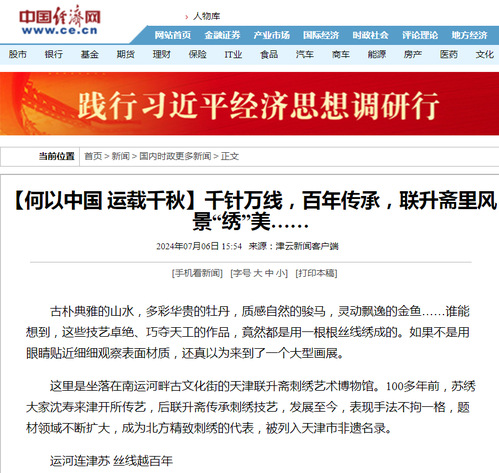 这里是坐落在南运河畔古文化街的天津联升斋刺绣艺术博物馆。100多年前,苏绣大家沈寿来津开所传艺,后联升斋传承刺绣技艺,发展至今,表现手法不拘一格,题材领域不断扩大,成为北方精致刺绣的代表,被列入天津市非遗名录。