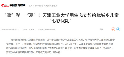 “津”彩一“夏”!天津工业大学用生态支教绘就城乡儿童“七彩假期”