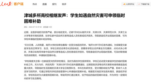 人民日报客户端丨津城多所高校相继发声:学生如遇自然灾害可申领临时困难补助
